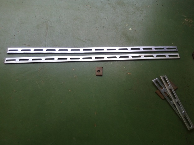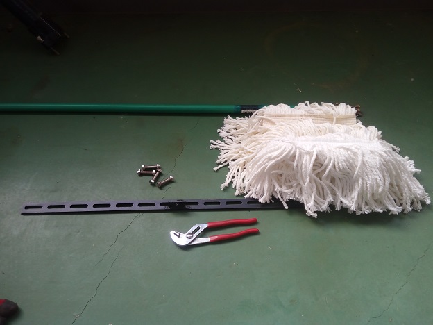 そこで、フラットバーと廃材を使って3つのモップの頭がつけられる柄を作ってみました。