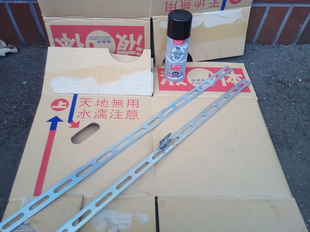 ラッカー(つや消しブラック)で簡単に塗装。未塗装でも亜鉛めっきされているのいいのですが見た目重視で塗装しました。