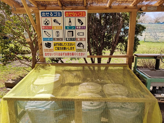 炊事場奥にゴミ捨て場があり、無料で利用できますが、しっかり分別して捨てましょうね。