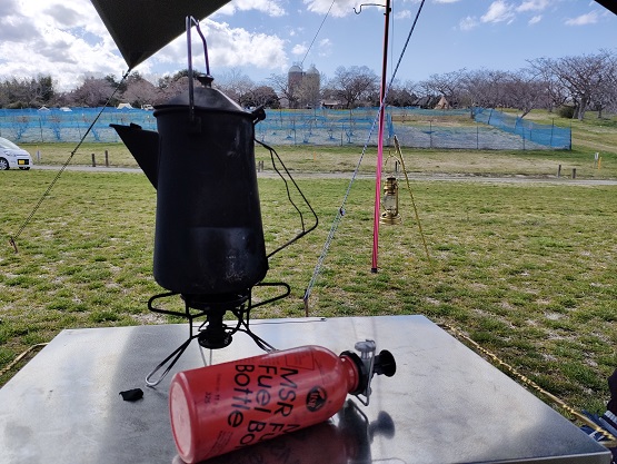 まずはMSRのバーナーでお湯を沸かしてカップラーメンで昼食。