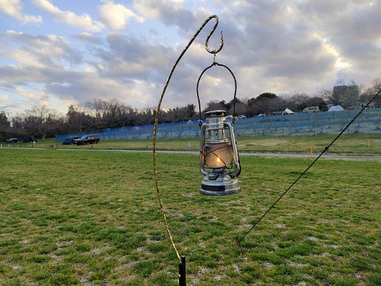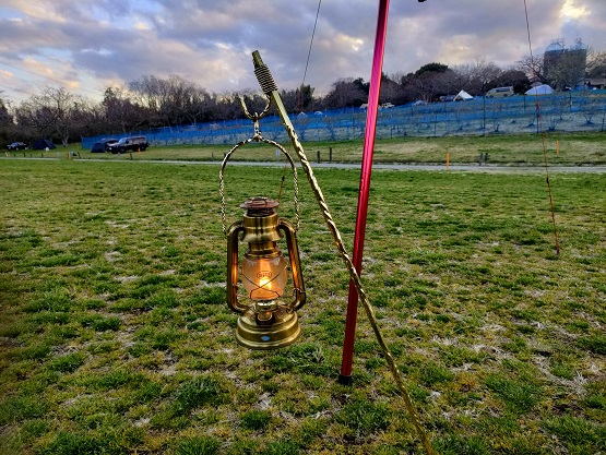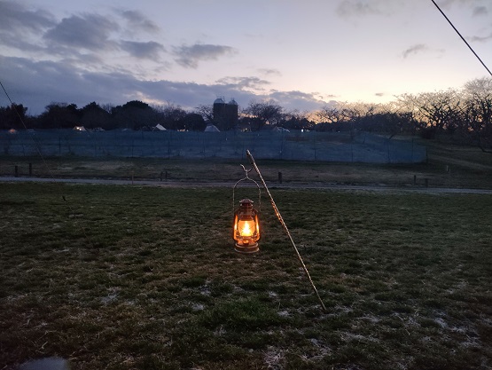 帰ってきたら、焚き火を次男に任せて、私はランタンに灯を灯しました。