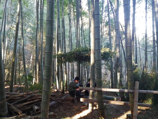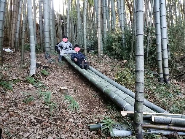 今回は、私が斜面の孟宗竹を切っている間に子供たちが何やら作ったようなので記録に残すことにしました。