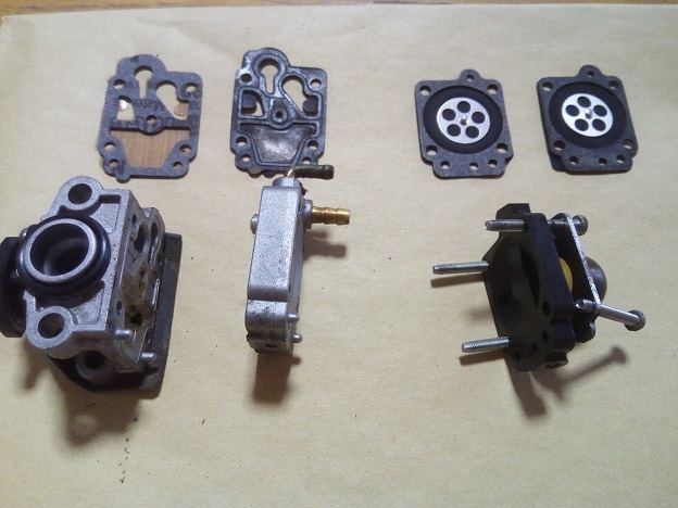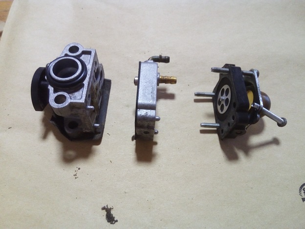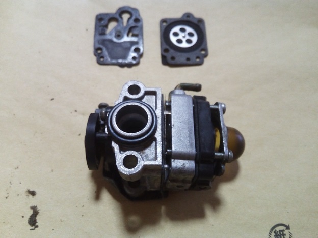 しかし、今回の場合は前日の草刈で燃料を使い切って止めているのでキャブレターの汚れや詰まりは考えられないのですが、一応キャブレターを分解してみました。