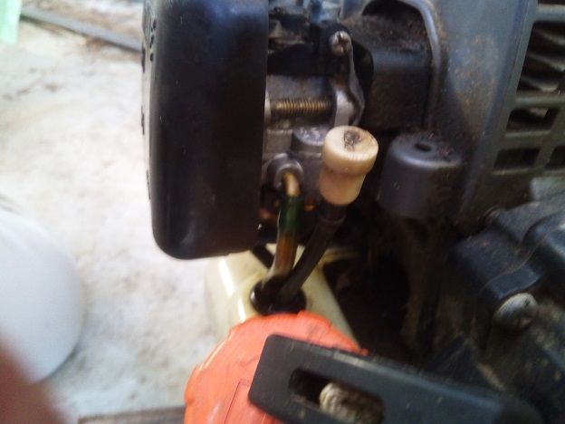 燃料タンクから、キャブレターに燃料を送るホースなのですが、よく見てみると亀裂が一箇所あり、そこから燃料が漏れています。これも直接、エンジンが始動しない原因ではないと思いますが、念のためAmazonで購入しました。