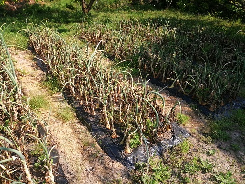 わずか2週間で玉ねぎ畑の状況が一変しているのにお気づきでしょう。ほぼ枯れてしまっているように見えます。