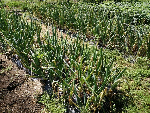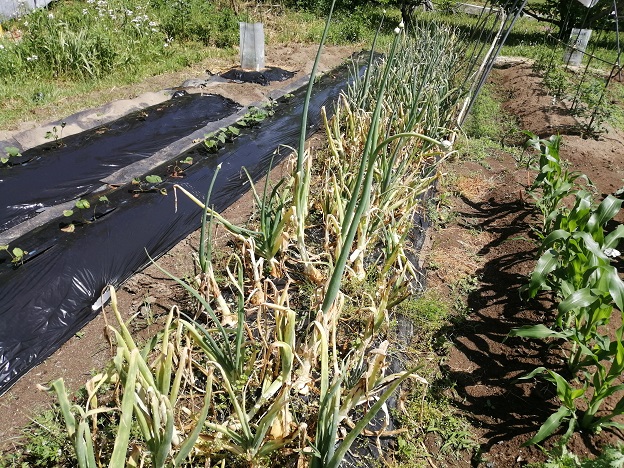 昨年、黒土を購入した畑の玉ねぎはまだ今のところそれほど酷くありませんが、やっぱり病気に侵されているような気配なので、こちらも近々収穫する必要がありそうですが、もう少し玉が大きくなることを祈って畑に残しておきます。