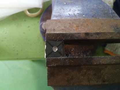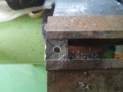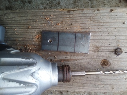 始めにカットしたフラットバーの中心にドリルで穴を空けます。ここはいい加減な私も慎重に作業しました。