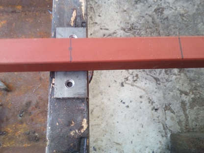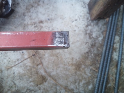先ほど作ったネジを切ったフラットバーを角パイプに溶接しました。