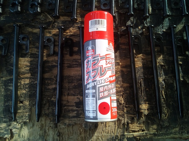 塗装に使うラッカーはこれ「ナフコ カラースプレー」です。どうせ、すぐに塗装が剥がれるので安いスプレーで塗装します。
