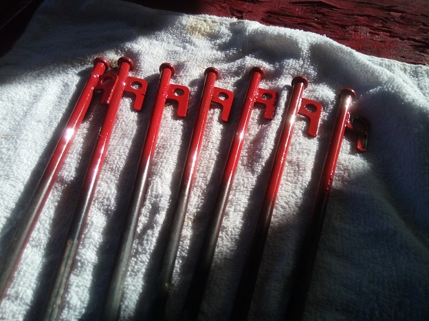 キャンプに備えて、ペグの可視性を良くする意味で色付けしてみました。