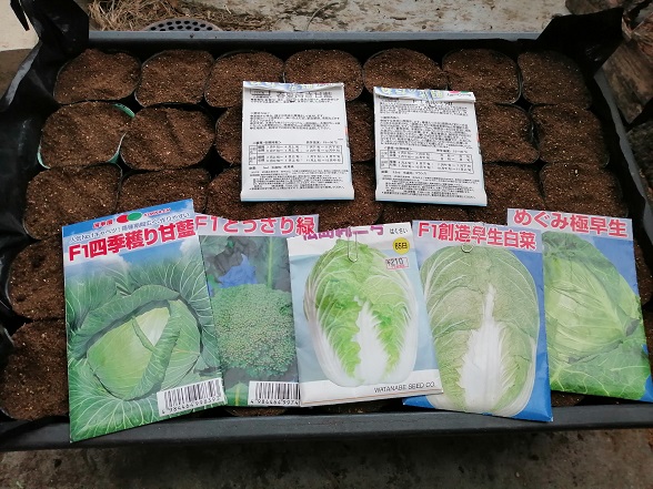 今回は新たに購入した「F1四季穫り甘藍」も蒔きます。