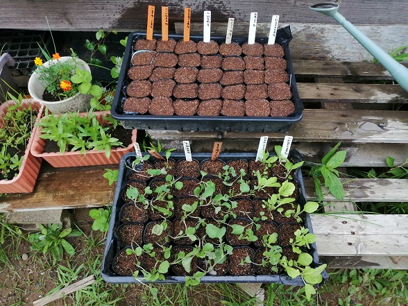 それでも上手に定植すれば、その後の成長にはあまり影響が無いことは経験から確認できているので、定植することにしましたが、念の為、再度種まきをしました。