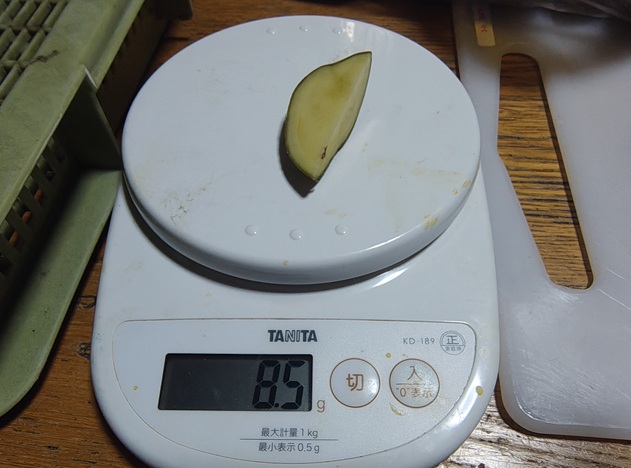 1番小さな種芋は8.5g。平均すると15g程度になっていると思います。