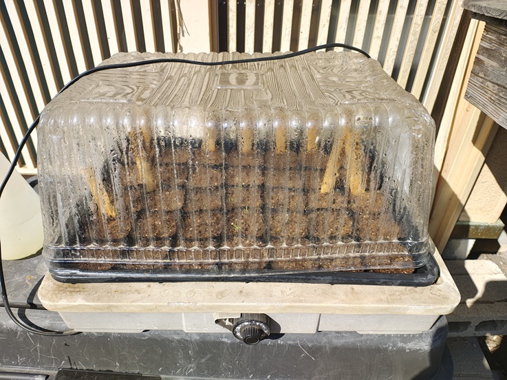 2月8日に種まきをして保温気で温めながら育てている夏野菜。