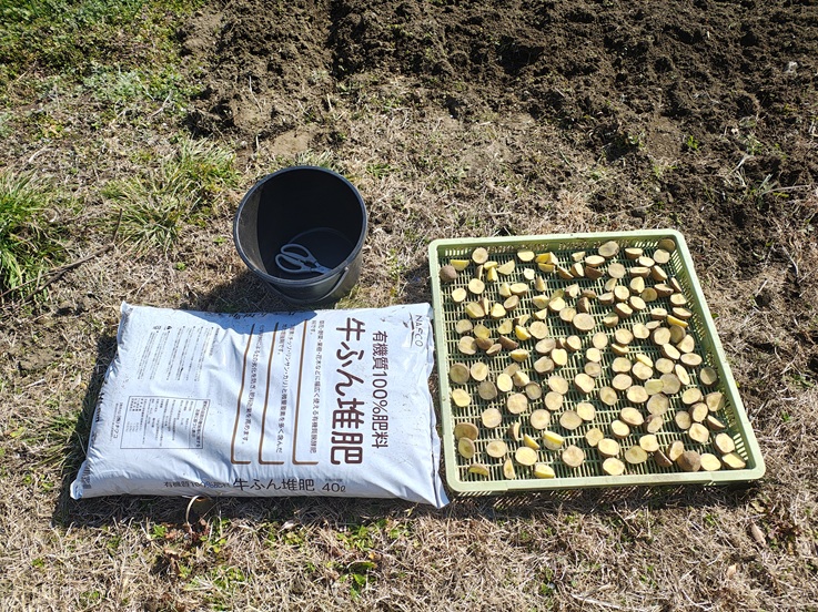 あると無いとでは収量に影響するのでジャガイモ栽培には必須だと思います。今回は40Lを2袋買ってきました。