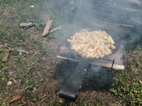 昼食は収穫したじゃがいも