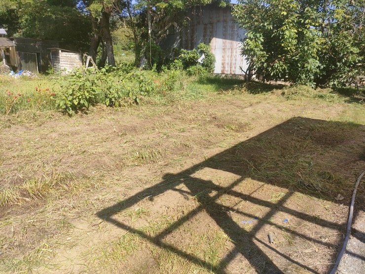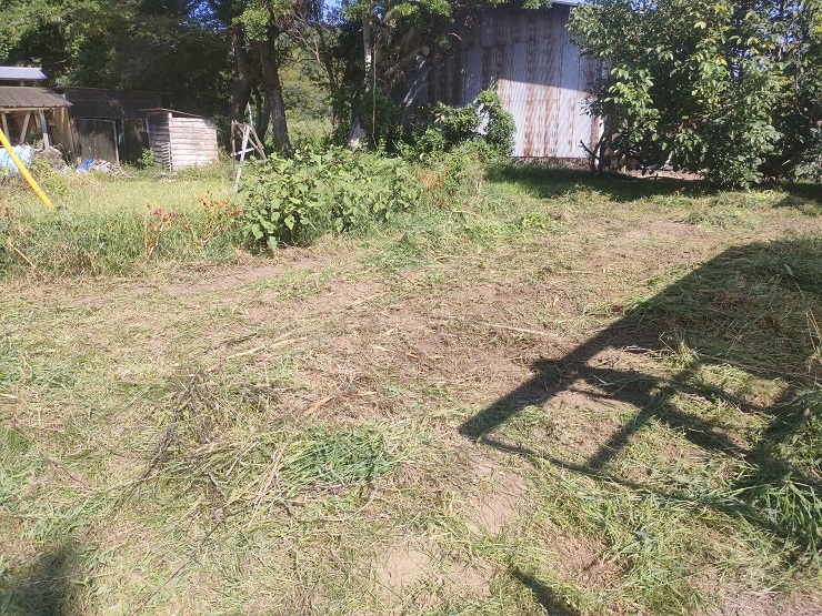 機械で刈ればあっという間、ここには「かぼちゃ」「エダマメ」「オクラ」「バジル」などが植えてあったのですが見事に収穫できませんでした・・・・。