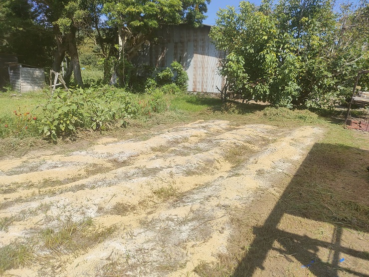 こんな感じに撒き散らしたら耕運機で畑を耕していきます。