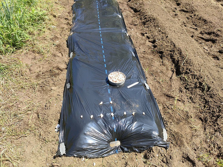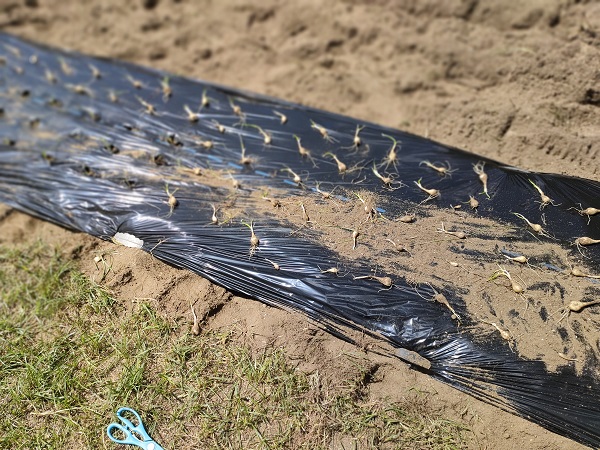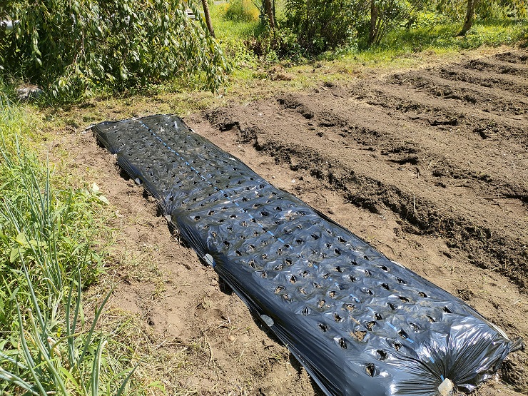 マルチ張った畑に並べて