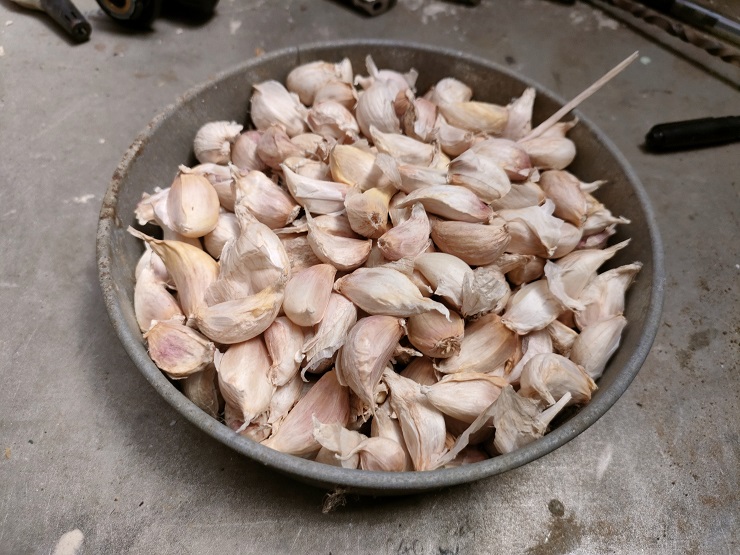 島ニンニクは吊るしていたら、ドンドンスカスカになってしまって、1片も小さくなってしまったのですが、薄皮を剥くと綺麗な肌だったので大量に植えつけることにしてみました。