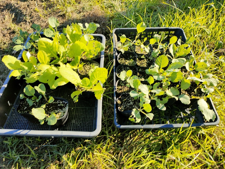 「白菜」「キャベツ」「ブロッコリー」「カリフラワー」の第1段の苗が出来ているので、畑に定植します。