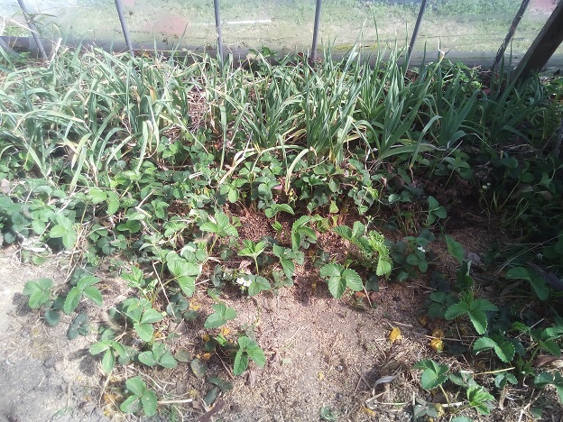 現在のハウス内はじゃんぼにんにくと野生化したイチゴが幅をきかせています。