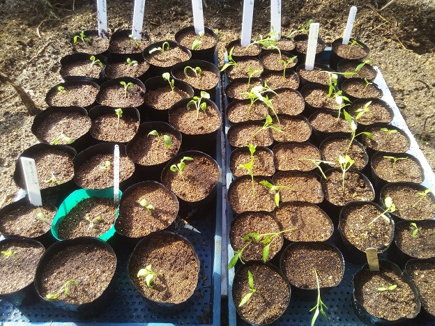 1月27日に種をまき、2月ごろからポチポチ芽が出始めた夏野菜。