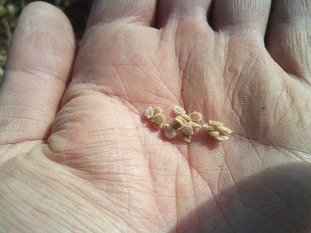 これは昨年採取した「シュガーランプ」と言うミニトマトに種、うっすら産毛も生えて可愛らしい種です。