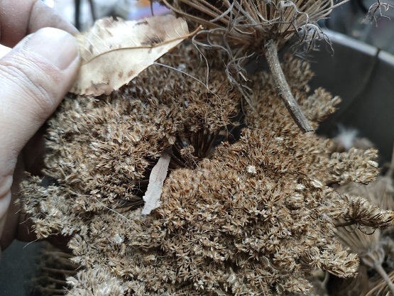 7月に花盛りだったニンジンもしっかりと種になり、乾燥も終わったので保管の為に採種しました。