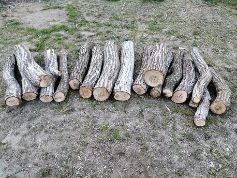 そうなる前に昨年11月に切り倒した「コナラ」にシイタケの菌駒を打ち込むことにしました。