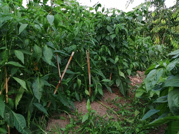 雑草もそこそこ伸びてきているので、ちょっと分かり難いですが、夏野菜(ナス・万願寺唐辛子・ピーマン・きゅうりなど)は驚くほど順調に成長しています。