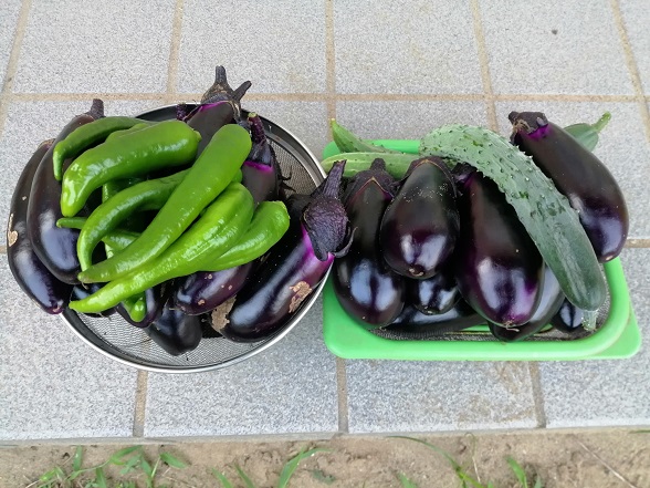 大量に収穫できるナスは、保存の利くナスのからし漬け(からし粉使用)にしたり、日々の調理で消費できますが、それにしても今年は大豊作の予感がします。