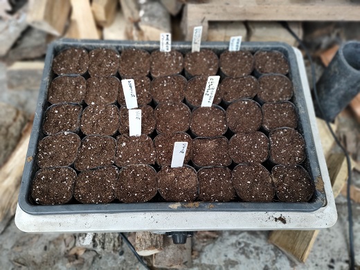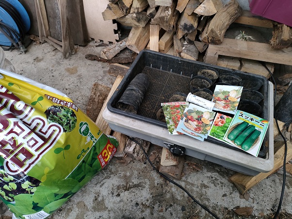 前日に雨が降った影響で山も畑もべちゃべちゃなので、今日は大人しく小屋で夏野菜の種蒔きをすることにしました。