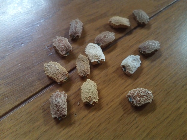 1晩水につけたゴーヤの種を、ポットに2粒づつ蒔いていきます。