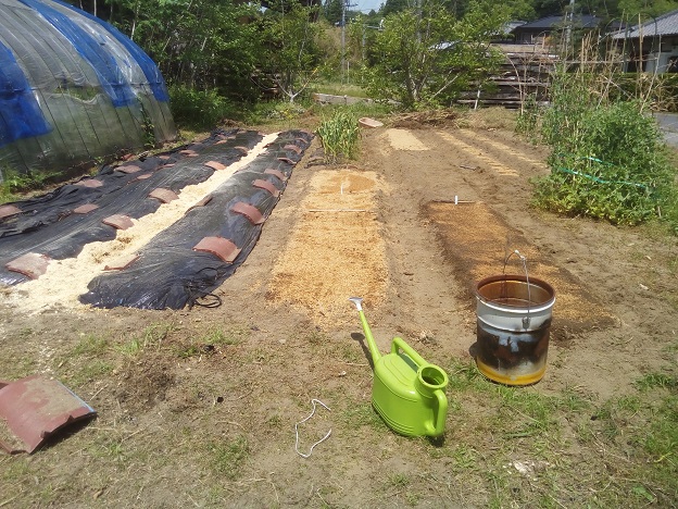 モミガラがかかっているところが今回種を蒔いた場所になります。