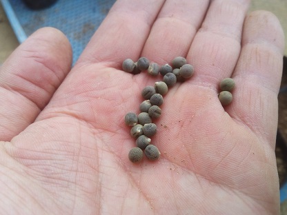 4つの採取年がある種なので4箇所に区画分けして種蒔き。