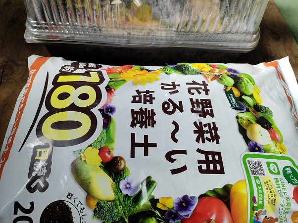 今回は義母にもらった「花野菜用かるーい培養土」を使ってみることにしました。