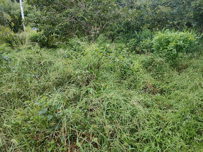 一応、唐辛子やナスなどが植えてあるのですが、雑草に覆われてしまって、もはや何が何だかわからなくなっています。