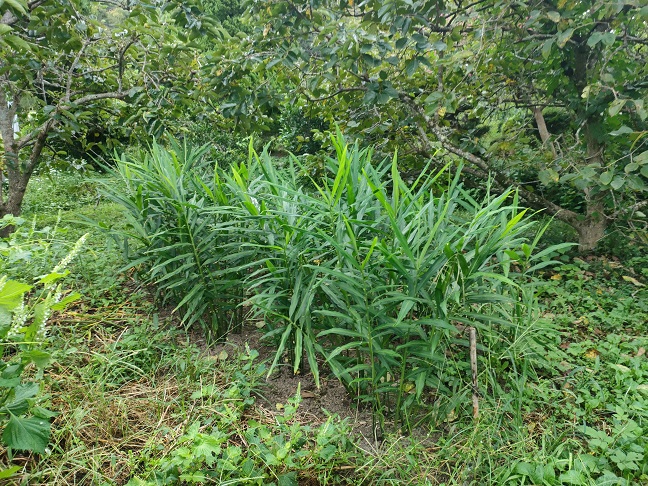 奥に見えるのは、イノシシの被害も無く順調に成長した「しょうが」です。