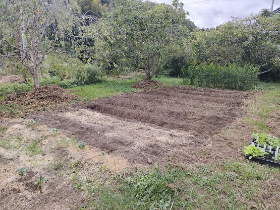9月も20日を過ぎ、暑さ寒さも彼岸までなんて言葉が頭をよぎっていますが、今日も空調服を着て作業しないとやってられないぐらいの気温と湿度です。それでも季節は流れているのでせっせと冬野菜の畑の準備を行ないました。