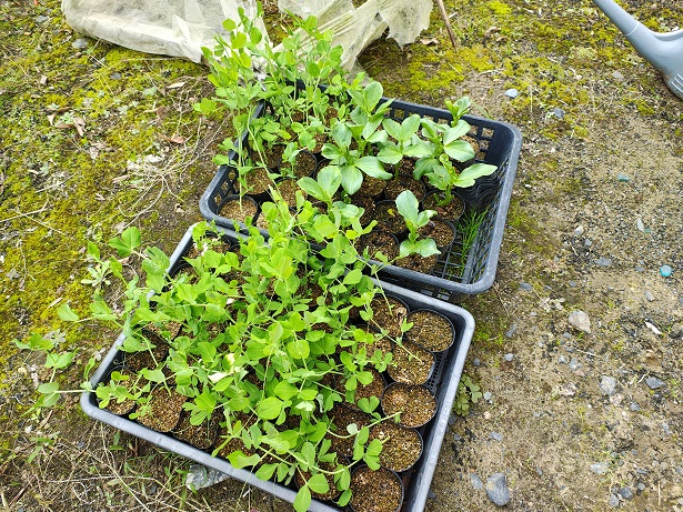 10月に種を蒔いたスナップエンドウが大きくなったので、畑に定植します。