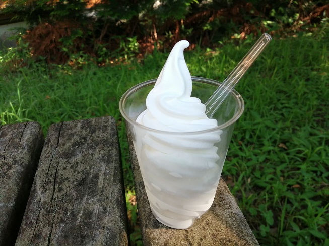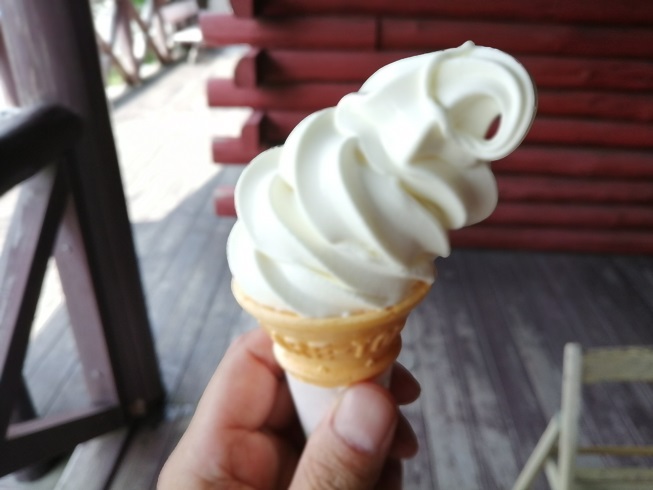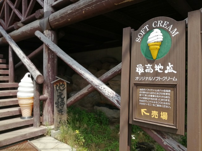 最高地点のオリジナルソフトクリームを食べながら小休憩をして時間調整しました。