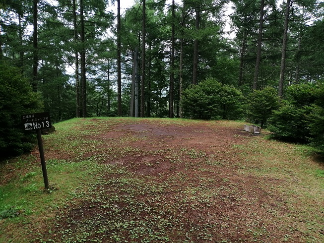 立原高原唯一、隣りあわせとなっているのが13番・14番サイト。私が利用した期間中、2組の方が片方に車を2台、もう片方にテント2張とグルキャンを楽しんでいました。