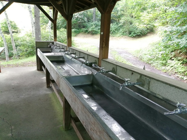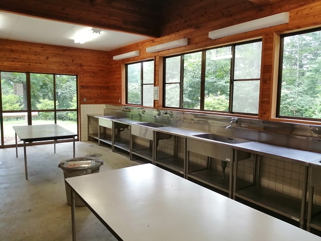 林間サイトの前には、オートサイトBと林間サイト用の炊事場があります。昔ながらのキャンプ場の炊事場といった感じで、こちらは温水は出ません。