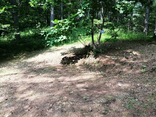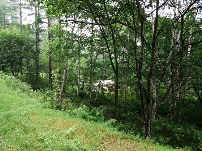 サニタリーハウスの前の道を進んでいくと、林間サイトが現れます。