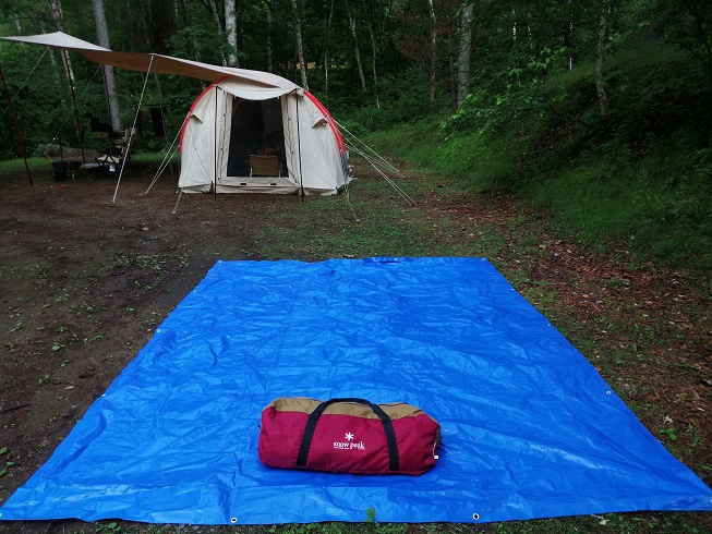 いつもはカマボコテント2とタープを張るスタイルが定番となっていますが、今回はスペースがあるので、購入後初設営となる「アメニティードーム」も張ることにしました。