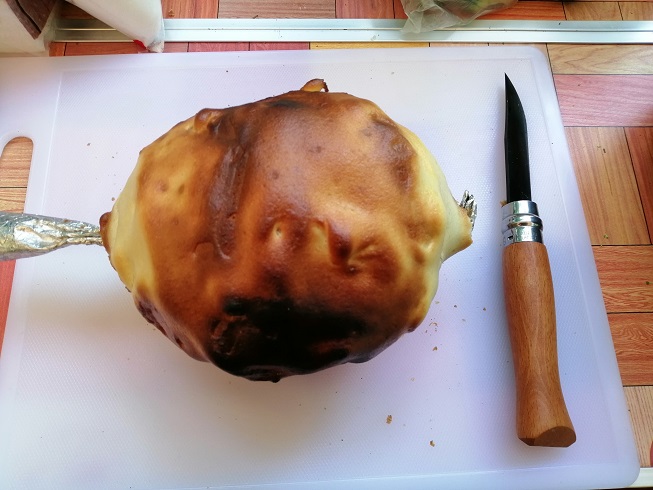上手に抜けました。アルミホイルはこの時点では抜けないので、カットしてから抜き取ります。あとはカット面が綺麗に見えるかどうか緊張の一瞬です。