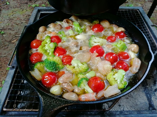 初挑戦のアヒージョも、特別油っこくならず、これなら簡単なので、今後のキャンプに再登場しそうだけど、子供の評判がイマイチなんだよなぁ~。