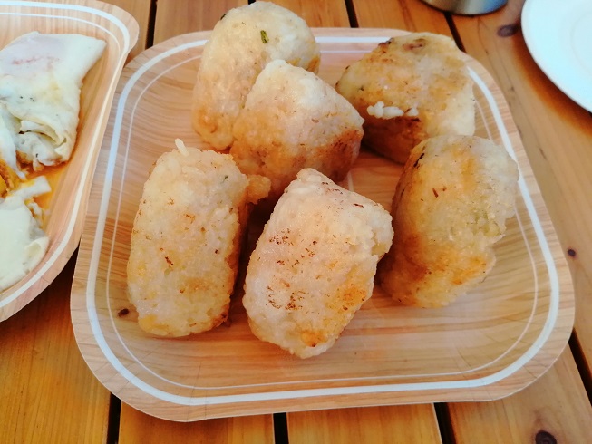 前日の夜に準備しておいた、おにぎりを使って焼きおにぎりを作ります。