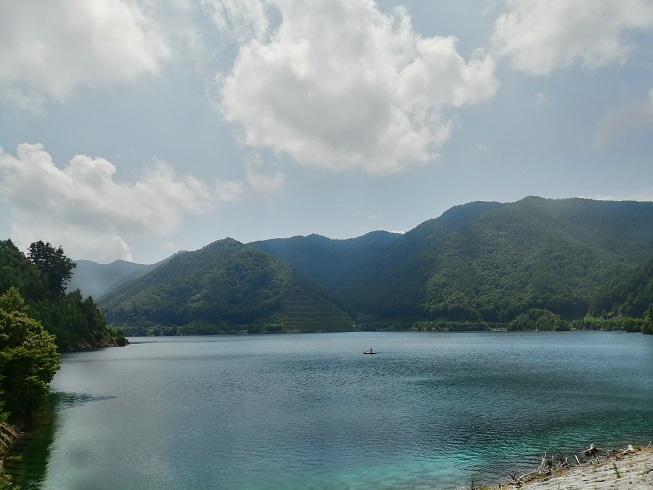 ダムの水は青みがかってとっても綺麗な水です。反対側を覗くとさっきまでいた場所があんなに下に見えます。